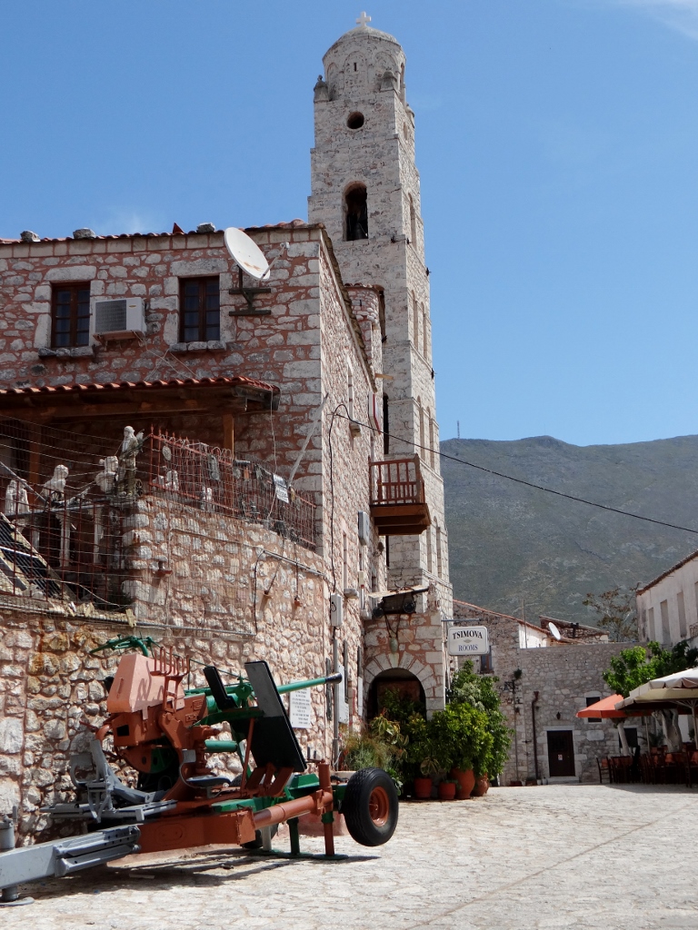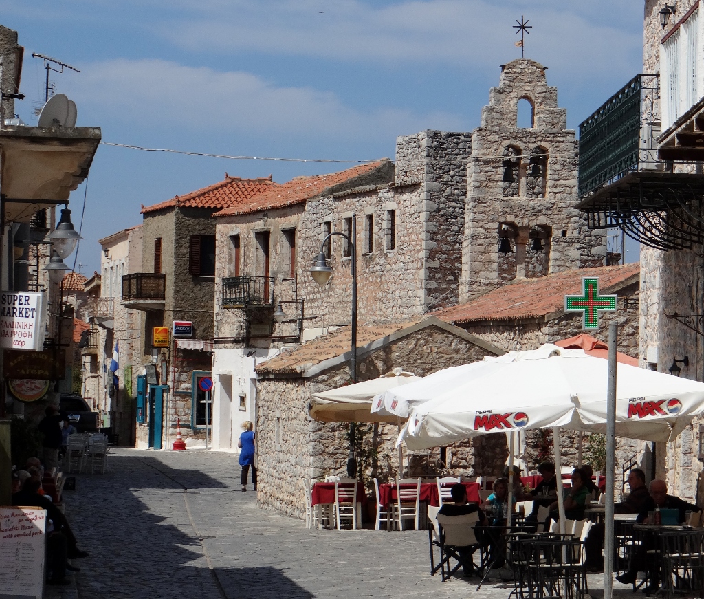 Listen in to the conversations in the cafe in Areopolis where we sat and had a nice cool drink in the shade.