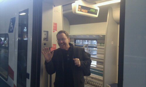 A couple of minutes late Jay’s train arrived. Cleaners got on board ahead of its departure again in 12 minutes. A quick farewell (we both hate long goodbyes) and obligatory photo and Jay got on board. Because we’re not in a movie and he’s back in a couple of days, I didn’t bother running along beside the train as it pulled out. Instead I headed for another look around the shops – it’s been a very long time since I’ve been shopping alone!