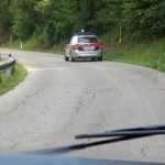 Austria is an itinerant’s dream. Last night we slept well again, lawfully parked in plain sight, in spite of the relentless hammering rain amplified by Dave’s roof until we think it’s bound to break through. A truck pulling into the lay bye this morning was just one of the army of Austrian public servants emptying the bin. Once he’d gone I took Charlie out, and noticed there’s even a sign showing it’s 3.5Km North to the nearest disabled loo.