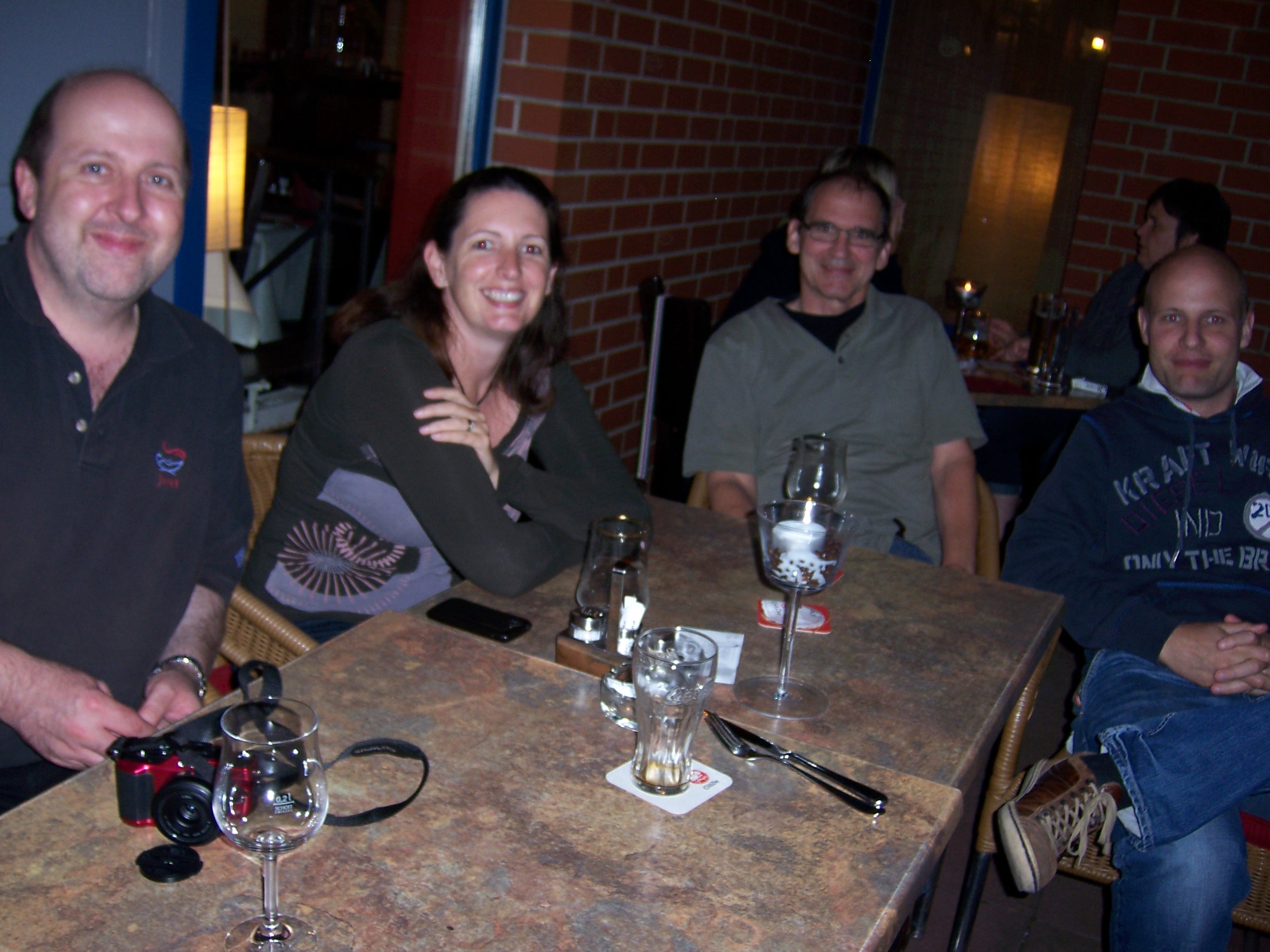 Last night we ate the most amazing spare ribs. All you can eat for €10, but pathetically we could only manage one plateful each, I even had to send some of mine in Jay’s direction and create a doggy bag for Charlie – they were sooooo tasty. Jay’s ex-colleague Friedhelm picked a fab restaurant in the outskirts of Hannover (ideal for us as we couldn’t get into the city due to the emissions restrictions – Umweltzone!). There we met up with Friedhelm, Harald and Roger all of who used to work at the same place as us, albeit in different parts of it. We had great company to accompany the great food and chatted away for quite a while. I was really pleased to see Roger again as he moved over to Germany a couple of years back from the UK, so he has all the ex-pat insider knowledge of the place, as well as vast knowledge gleaned from driving all over Europe. Our top tip for the night was to fill up with fuel on a Sunday, Monday or Tuesday evening when it’s cheapest!! When it came time for the bill the waitress went round the table asking what each of us had and split it up for us so we could all pay separately – I glanced over at Roger and smiled, that would never happen in the UK!