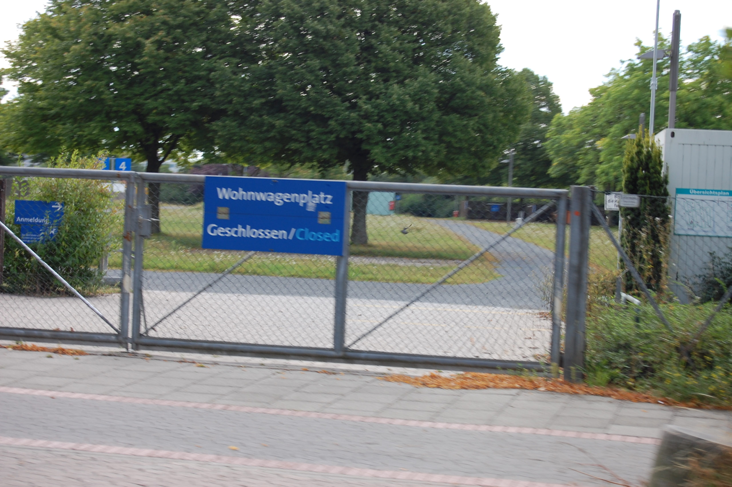 Suspecting we weren’t in the best place to stay (as no one else was there) we decided to hit the t’interweb and find out from Hannover tourist information where to park. The only dedicated motorhome parking outside the Umweltzone was at the Messe – but reading the website it had good transport links, so off we went. By the time we’d reached the Messe we had literally driven all the way around Hannover, like a lion stalking it’s prey. We followed the motorhome parking signs to the gate.