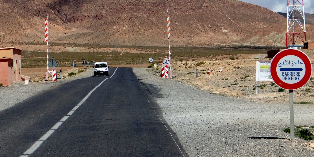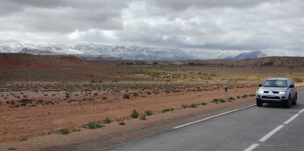 As we approached the High Atlas Mountains the snow gates were up, and although there was a snow plough, with a man sat in it ready to roll, the grey clouds kept themselves over the higher peaks which were already dusted with snow.