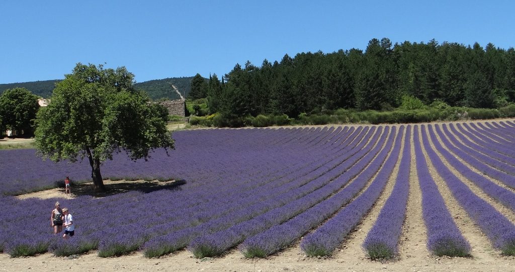 Zagan the motorhome’s sat under a hot sun in a bowl of hills, surrounded by trees and fields, with the pleasant waft of lavender in his nostrils, coming fresh from the purple rows he’s parked alongside. We’re at a privately-owned aire, made available free to the public for stays up to 48 hours at Ferme de La Condamine, near Saint Sauveur Gouvernet (N44.32717, E5.33210). It’s a beautiful and calm place, and the welcome from the elderly couple who own it was warm and genuine.