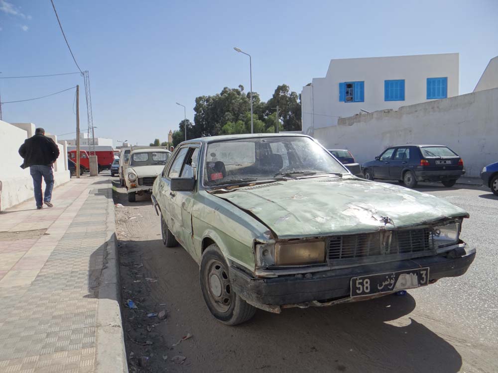 Seriously battered motors in Ben Guerdane. This one was actually in decent nick, still having headlights, sorry, a headlight.