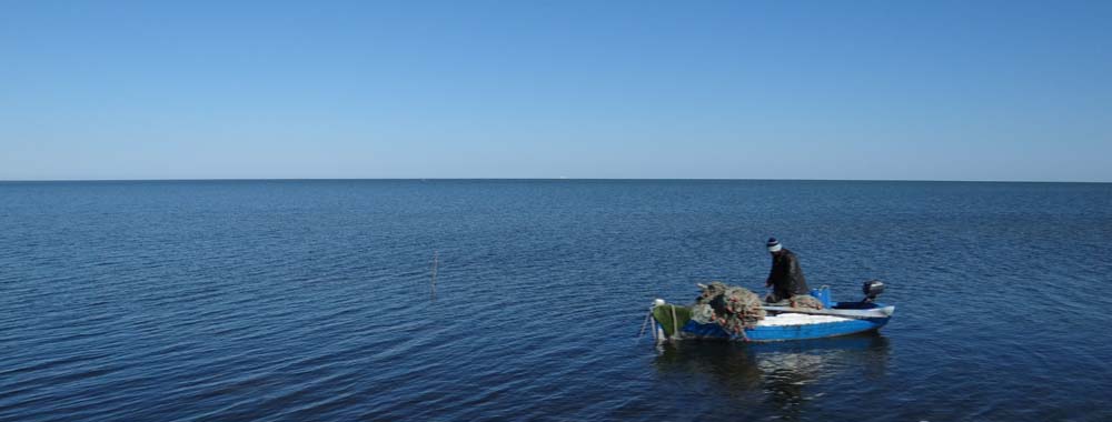 Our list of campsites says there is one at El Marsa, a few clicks from Ben Guerdane. With no road signs pointing the way we got lost, so we set up the laptop/phone GPS system and got back on the right track. Arriving at the co-ordinates, where a dirty-looking salt flat dips into the shallow and welcoming blue Med, just a couple of closed and forlorn looking whitewashed buildings signalled no campsite. After lunch and a fool about in the sea with Charlie, El Marsa was abandoned and we headed north.