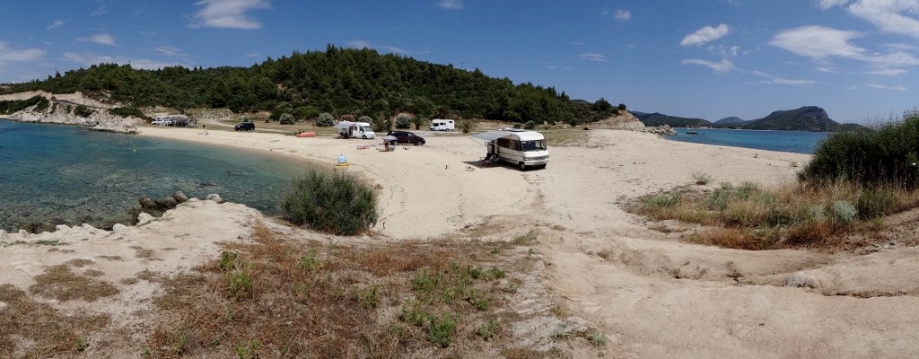 Imagine this. It’s Monday morning. You’re parked alongside a beach in Greece. the surface of the water flows and reflects like mercury. There are a couple of other motorhomes parked nearby, but you’re up first so the beach is your own.