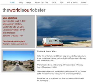 - The World is Our Lobster (no longer available). We devoured this blog while we prepared for our first trip. Catherine and Chris visited every country in Europe (while Chris worked from the van for the first two years). Catherine’s wickedly dry sense of humour is a lot of fun.