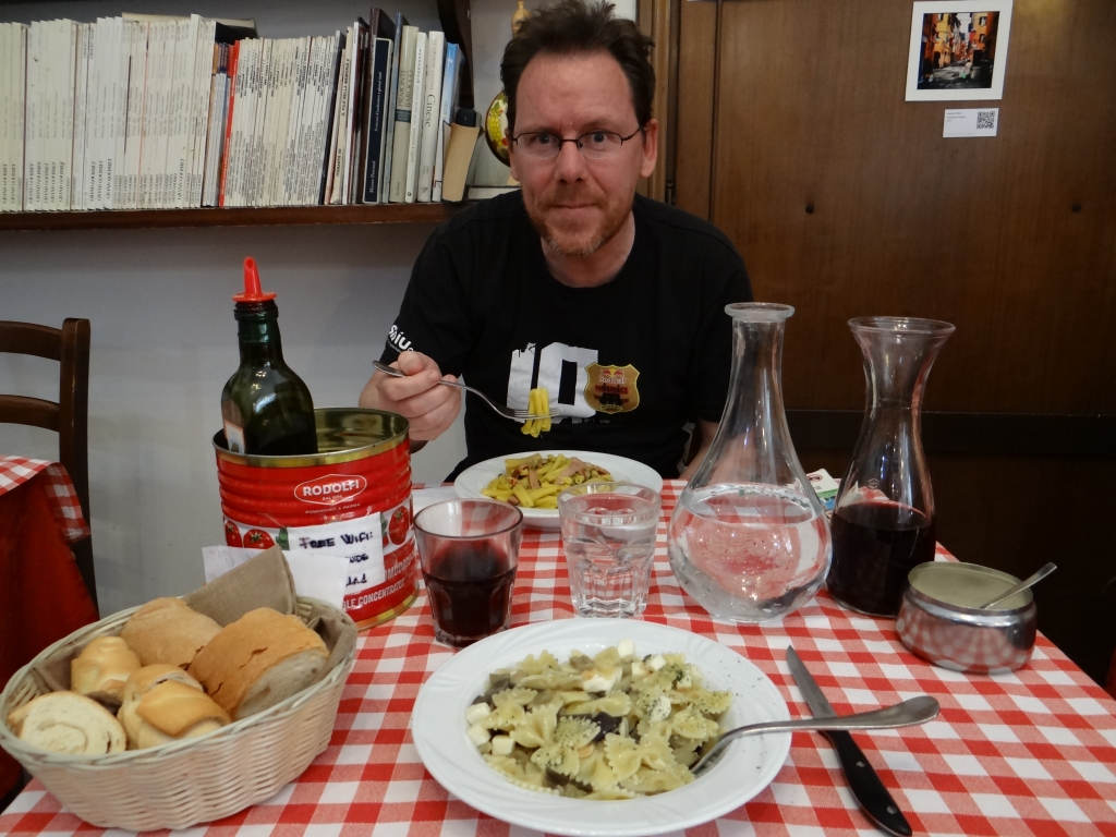We found eating out to be fairly expensive in Italy, so we mainly had snacks (ice cream) when out and main meals in our motorhome. But being the home of great good, we did eat out a few times just to see what all the fuss is about. In cafes you pay more to sit down and drink, if you want it cheaper stand up at at the bar with the locals. Keep your eyes peeled for food vans, they seem to be permanent fixtures in car parks and open up at night cooking up fresh tasty meat sandwiches, they are also often busy until the early hours.