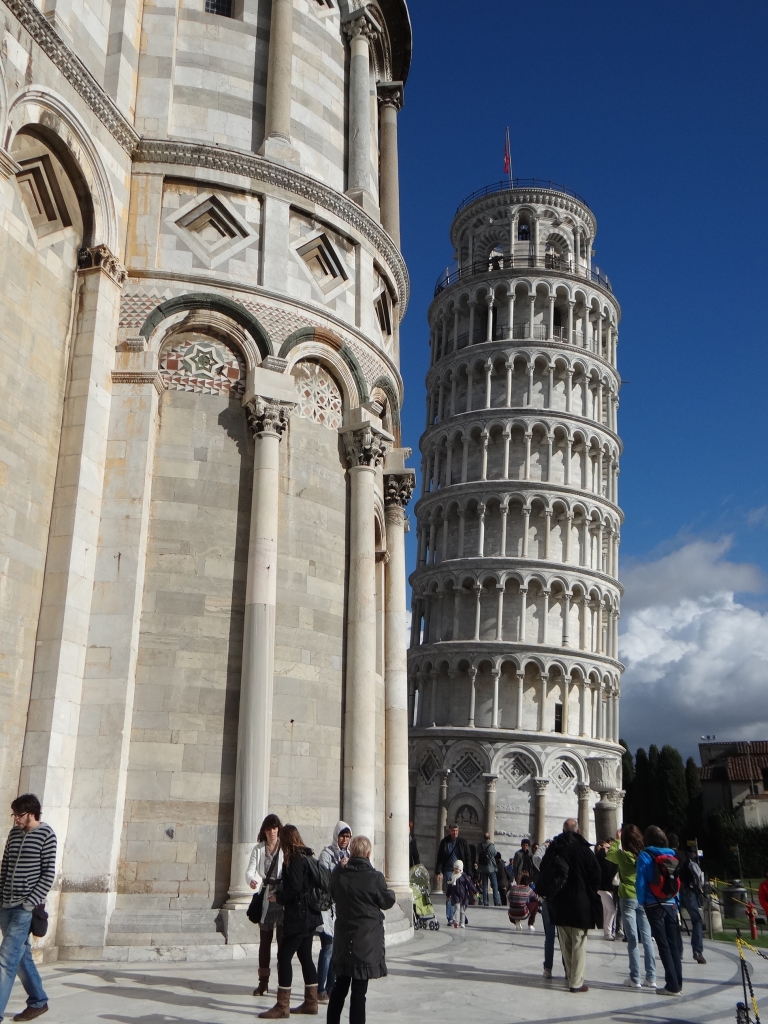 Sosta is the Italian word for what’s called a motorhome aire in France, somewhere that you can park your motorhome overnight and use the service point to fill up with water, empty grey water and empty black water. The prices vary greatly, expect to pay €20 or more for one in a heavy tourist attraction area such as Pisa, but there are also many towns with free parking, you just pay to use the services. Some sostas even have free services. As Italy has a great public transport system and dogs are allowed on it for free, we would often park at a free or cheaper sosta a little way out of a city and catch the bus or train in.