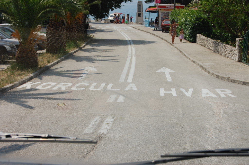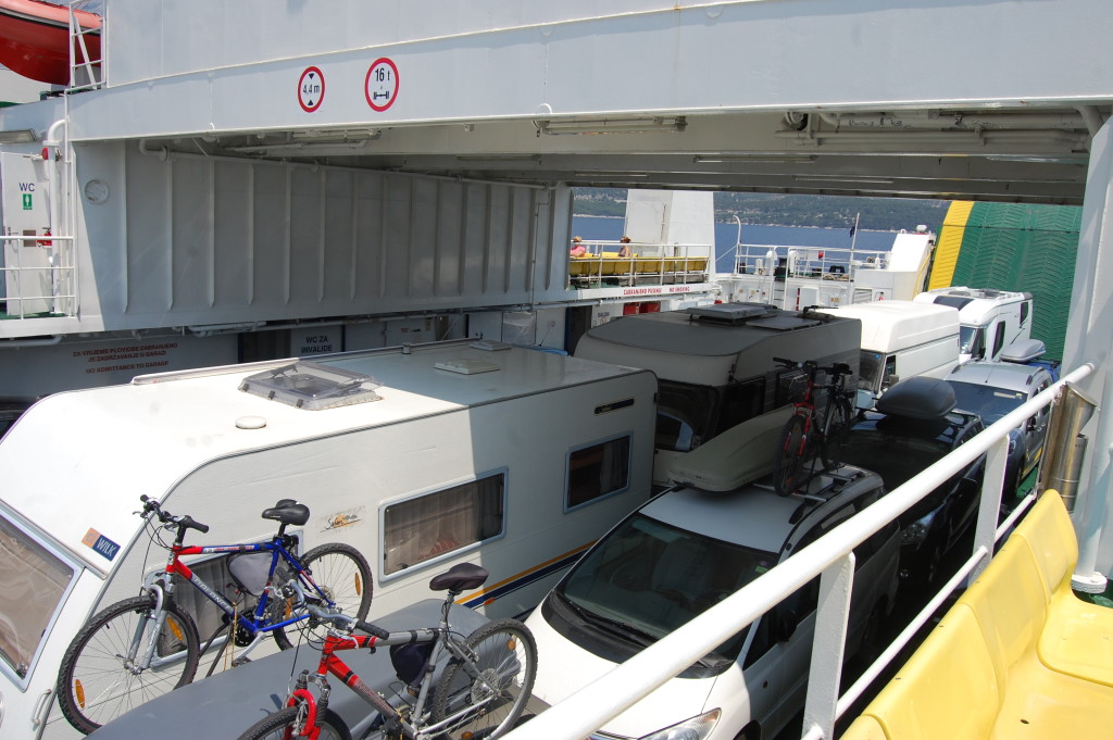 Drvenik port was laid back, we followed the signs for Hvar and reached a small ticket booth. Expecting a haggling session over the price – was a return cheapest? would it be cheaper to go in the evening? – we were greeted by the fixed priced on an old photocopied bit of paper taped up outside the booth (along with numerous other faded pieces of paper). No returns, no haggling, one price. Handing over 266kn seemed like a lot of money, but for a crossing of 35 minutes it was a bargain at around £28. Following the signs we drove past a queue of parked cars and caravans which snaked back round a turning circle and ended in front of us.