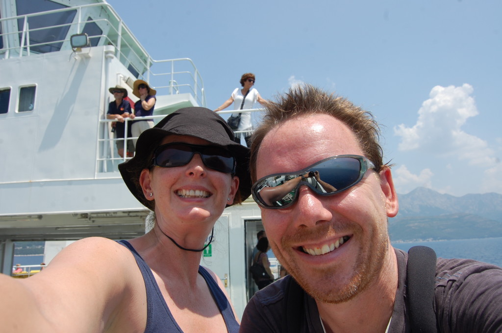 This morning it was 28c by 9am and set for another scorcher, we packed up camp and set off early before the sun got too high in the sky. For Jay’s 40th (in addition to the orange beer and chilli chocolate I got as surprises) he’d asked for a ferry to one of the islands. We looked at the prices from Split and they were around £80 one way, so we drove south to the small port of Drvenik for a shorter crossing. The road hugged the hilly coastline which plunged into the clear turquoise sea. As it was Sunday every inch of beach was occupied with a body or two and every car park and patch of land close to the sea was full of cars – we’d chosen a good day to drive.