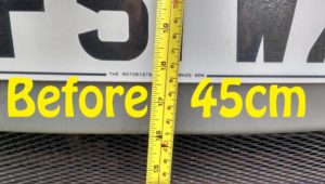 So, did they make a difference to the front end? They sure did. We’ve gone up by around 6cm. The pictures below measure from the bottom of the number plate, but in reality the front of the bumper has been lifted from 20cm off the ground to 26cm. This may not sound much but it will stop us hitting curbs and Zagan now looks a lot more level when sitting on a flat car park. Hopefully we’ll have to use our chocks less now.