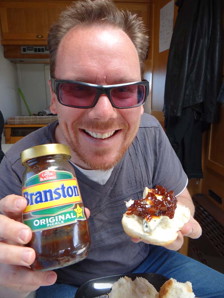 Bran-flippin-ston. Ju’s found some strong cheese here, stronger than extra-mature cheddar, and it goes superbly with my favourite vinegar-based chutney. Thanks again Bob and Sue, you’re heroes.