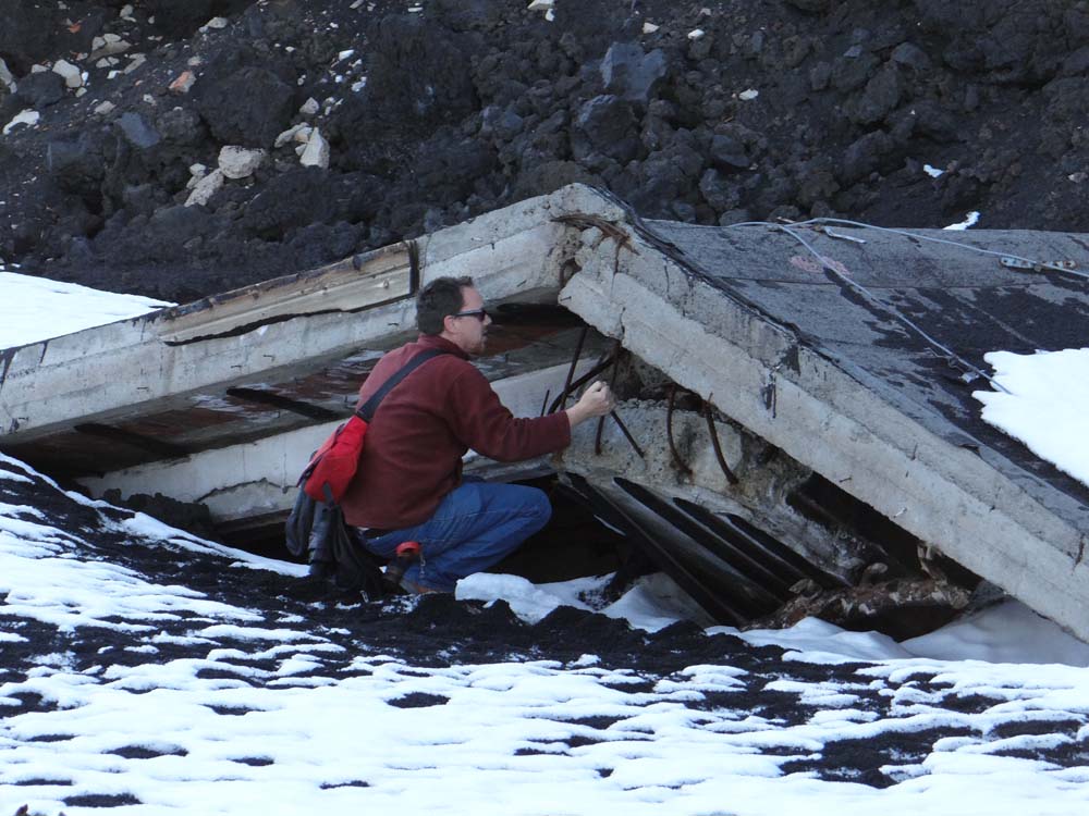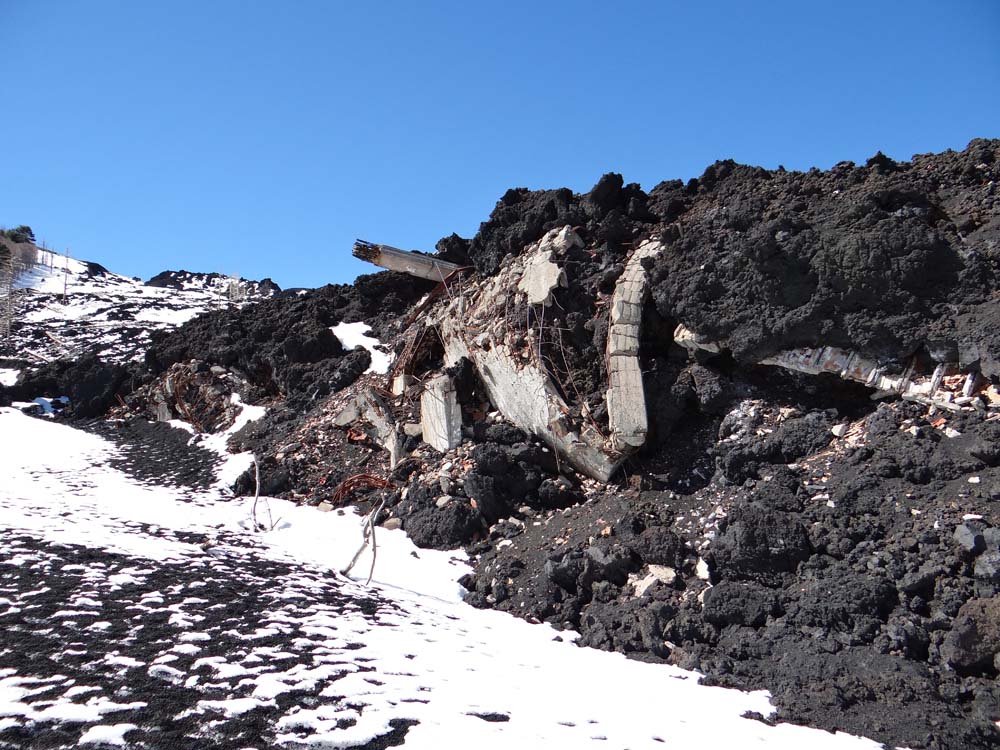 More concrete mangled in 2002 and 2003. Along one edge of the lava flow there’s a large old gas tank, which somehow avoided blowing itself to pieces.