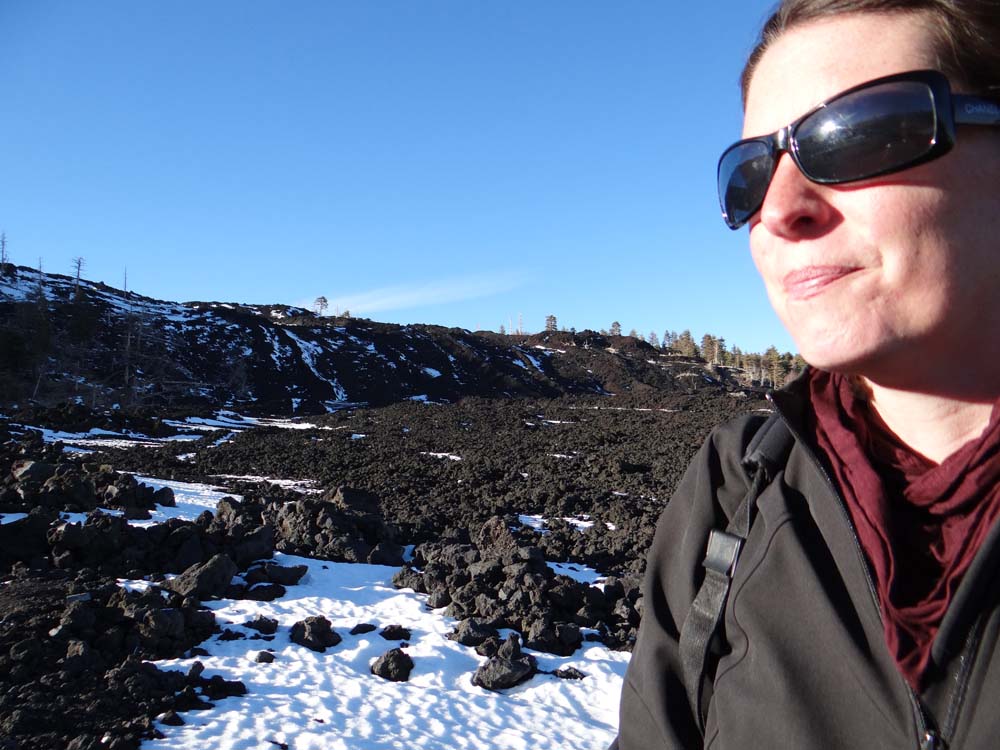 Ten year old lava flows either side of the parking area here, coming from high on the hill above us.