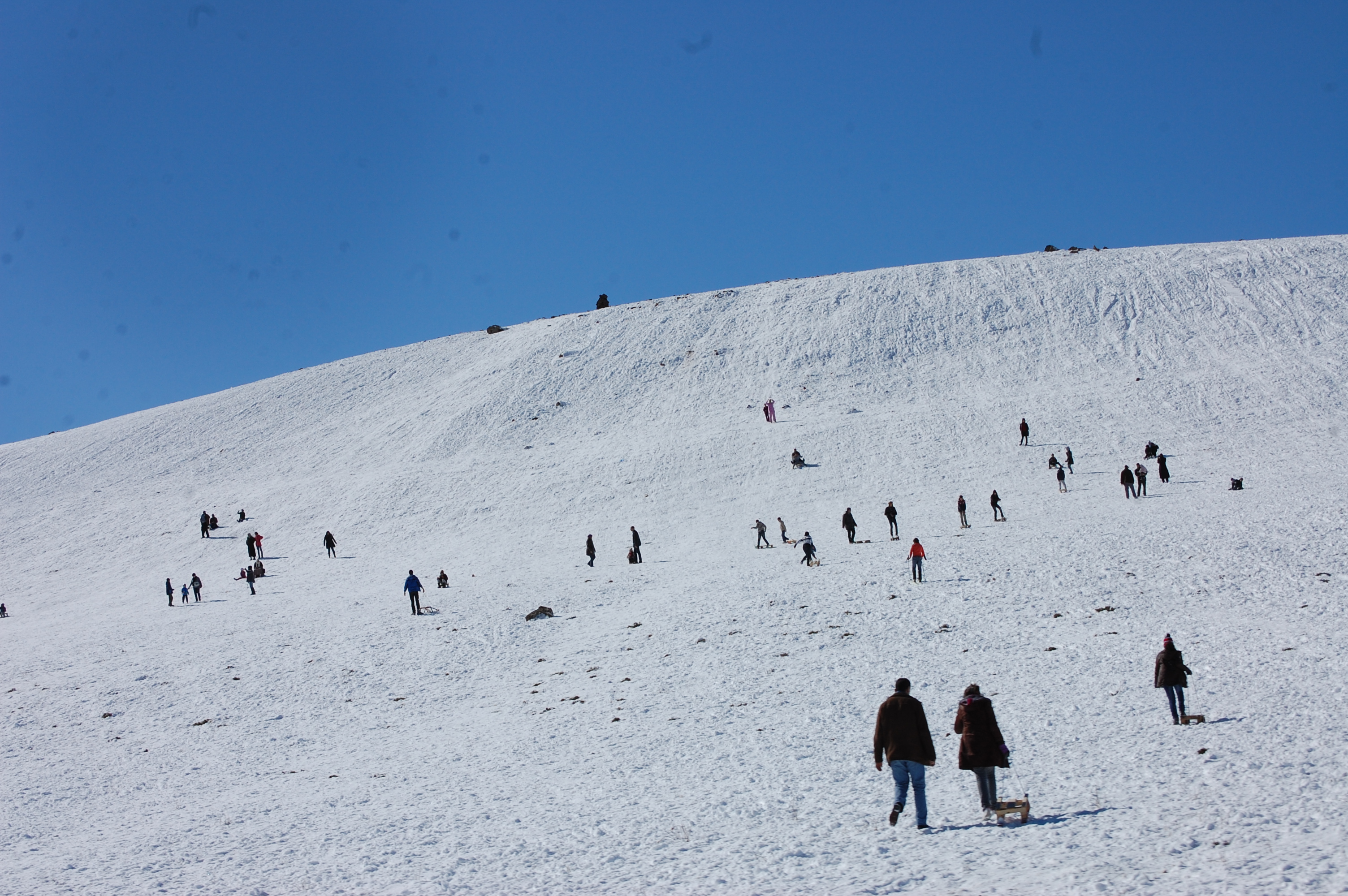 We drove round a corner and were suddenly greeted with a vast expanse of snow – sunglasses on time. Cars were pulled up by the side of the road as people played in the snow (although it looked like a few had pulled over to pray too – bad luck to have to pray in the snow at the side of the road, good job it’s only for 5 minutes). We passed a big hill where all the locals had headed with sledges and even a couple of people on skis. It reminded me of home and how excited we all get when there’s a bit of snow. The difference being that here the roads were totally clear – probably thanks to the snow-plough we passed!