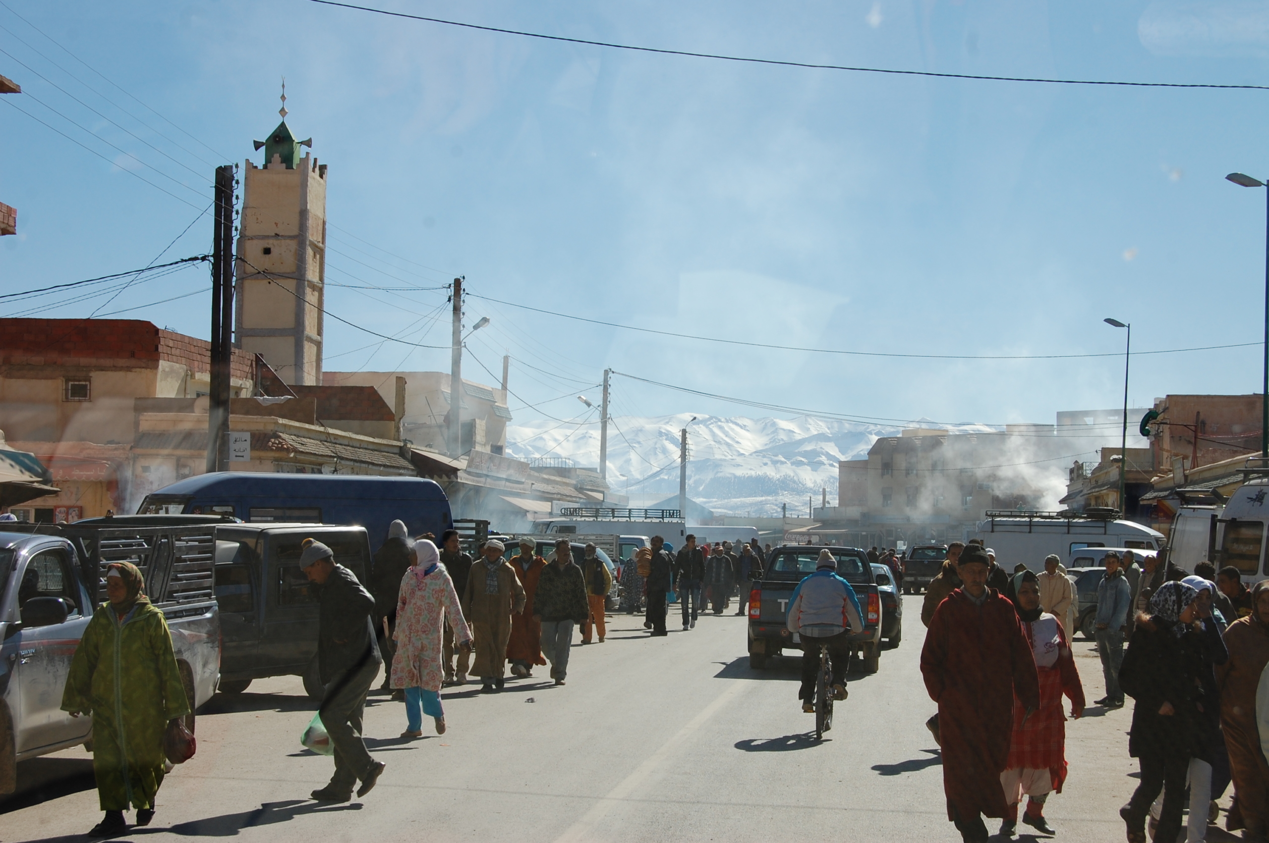 We passed through a couple of small towns on the plain, one was pretty much just a telecoms mast, and it was amazing to see the contrast. Houses were now small square dwellings that looked like they were made of the ground they stood on, and towns – well to be honest the towns looked like something you see on TV from Beirut, not sure if they were falling down or being built. None of this was probably helped by the chaos of market day which had people wandering in the street, cars and buses everywhere (road lines mean nothing on market day).