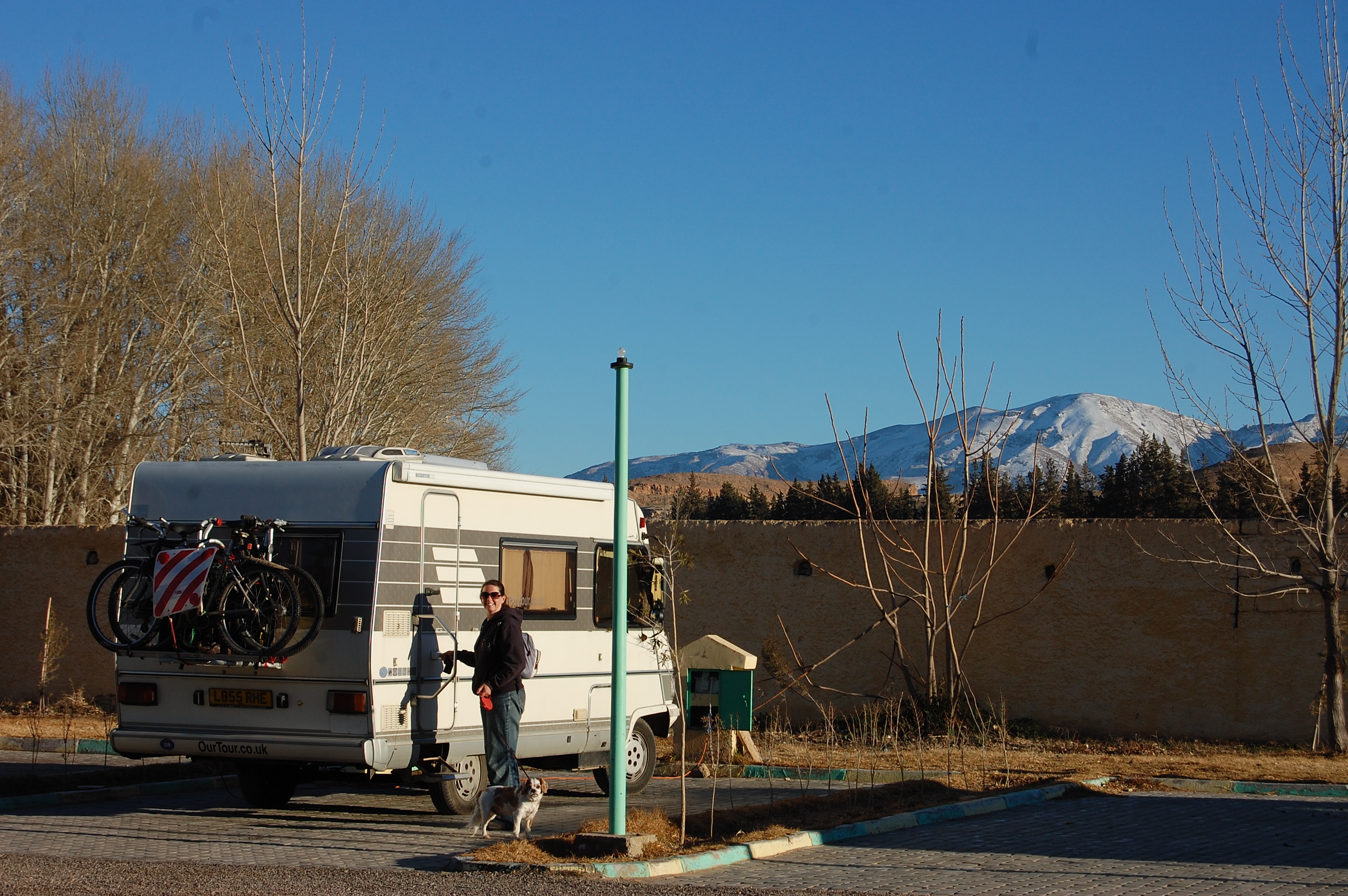 We’re here, at the municipal motorhome campsite in Midelt: N32.67778 W4.73704