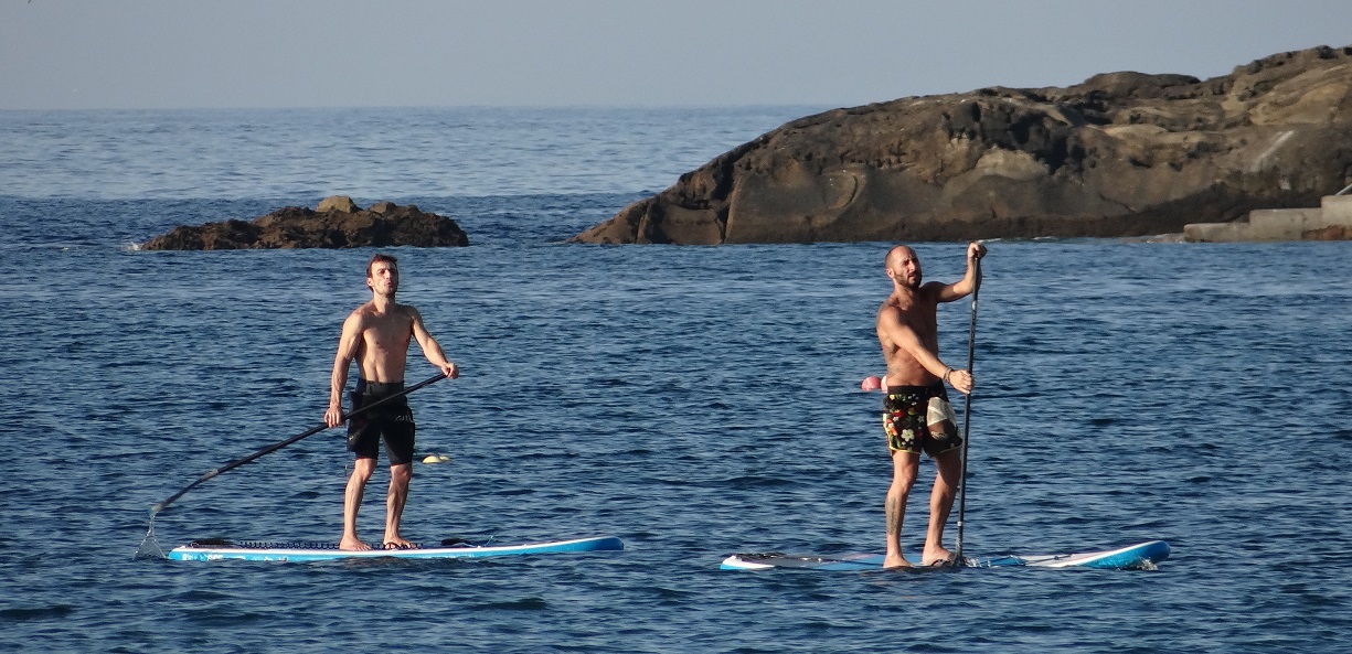 3:30pm on a Monday afternoon – good time to go stand-up boarding around the bay. I’ve been here just a few hours and am jealous of the locals already.