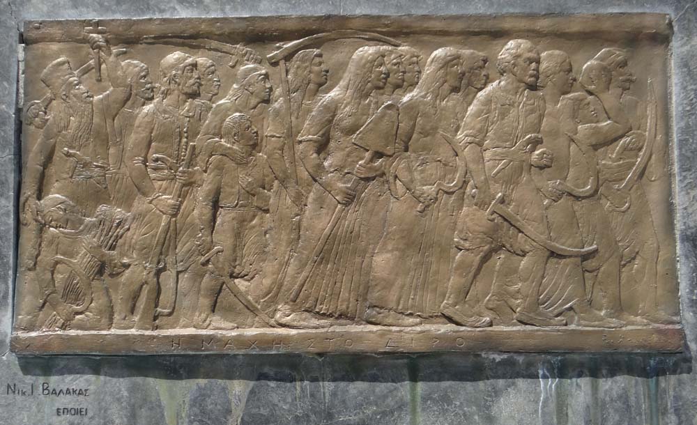The Maniots depicted on the way to give the Turks what for, kicking off the War of Independence. Note priest bringing up the rear.