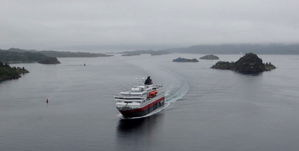 Spotting the famous Hurtigruten as we crossed the bridge to Austvågøy