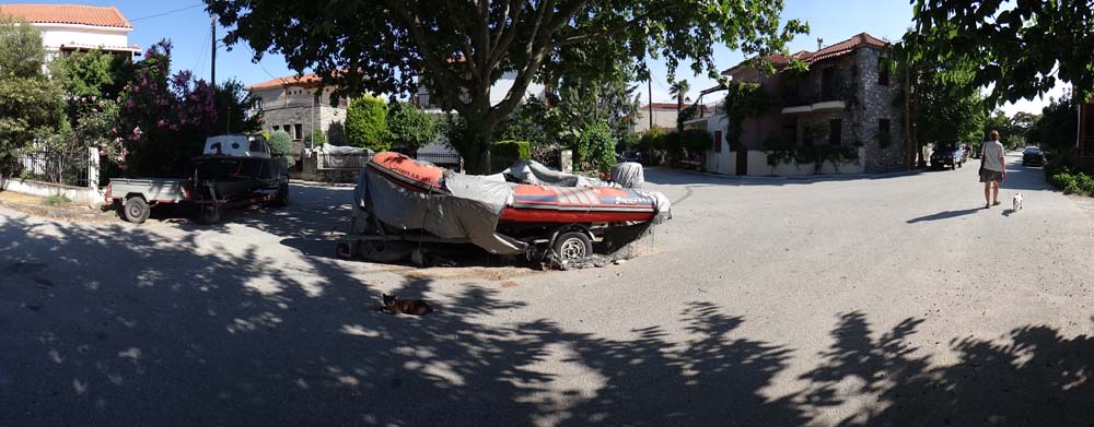 Camping Sikia’s a beautiful little site, rolling off down a gentle slop through the olive grove into the sea. The facilities are spotless. The thick cluster of trees makes manoeuvring difficult, but also means we can’t see much past our neighbours, so the fact the site’s rather busy is quite lost on us. Talking of manoeuvring, we had an odd experience earlier. A motorhome arrived to slot into the space next to us, but couldn’t get in. Picture it: man driving, wife outside. Much forwarding and reversing, much shouting, much waving of arms, not much progress. I half stepped in to help, wary of stepping on anyone’s ego, and within a minute they were in. The driver was unperturbed, uber chilled, despite the fact his wife was berating him apace. “He listens to you, he doesn’t listen to me, all he wants to do is go straight”. We’ve seen loads of this, it must be one of the most stressful parts of a journey, trying to get into a space under scrutiny of a crowd of fellow motorhome drivers, after a long trip. We’ve not perfected this, let me not mislead you, but with a boatload of practice we’re getting there. The key for us is not to communicate through speech at this point: Ju’s built up a set of firm, unambiguous arm movements and guides like someone bringing in an aircraft to a stand. I watch her, and ignore all else, works for us.
