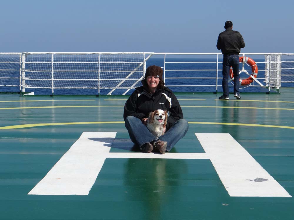 Once we were finally allowed on the ferry, half asleep, we made a game attempt to sneak Charlie into our cabin. No luck, the reception woman made us take a lock for the kennels, and the men who hand out cabin keys refused to do so until the mutt was in his cage upstairs. So, in he went. To be fair the cage was a good size, but our pampered furry fella hated it, whining and crying as we walked off back down the stairs. As the beasty is our surrogate son, we couldn’t stand it, and Ju made a couple of attempts to get the officials to back down. On the second attempt, as Ju explained I was sleeping in the cage with Charlie (I was) and asked for a blanket as the kennels were outside, they crumbled and told her to fetch us, handing over some old sheets so we could cover the beds in our cabin.