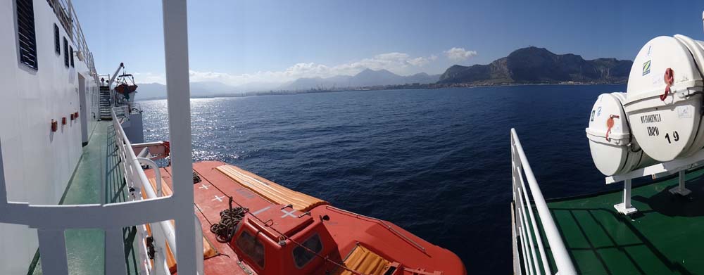 The ferry finally unhooked and left Africa about 4am, five hours late. From reading other’s accounts of ferries between Italy and Tunisia, that’s about par for the course. After grabbing roasting hot showers, we kipped like logs until 9am. From this point on until the point we drove into Palermo, there were no announcements, apart from ones to say the shop had opened and then closed. We worked out what to do by accident and by asking at reception a couple of times. Before disembarking we met Jessie, a student from northern California (where he assures us the sun does not shine), who has been working for food and digs in Morocco and Tunisia, with his next gig in North Italy. Top man, he’s doing it on the cheap and uses couchsurfing to find places to stay.