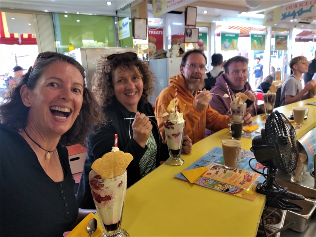 We were treated to a guided tour of the town as Richard spent a lot of time there as a child. This included the usual sights as well as a huge man, stuffed animals, and the biggest ice cream I’ve ever had. It was lovely to catch up with them, especially as they were fresh back from their latest adventure, walking the coast to coast path, so we could quiz them about the best way to do it.