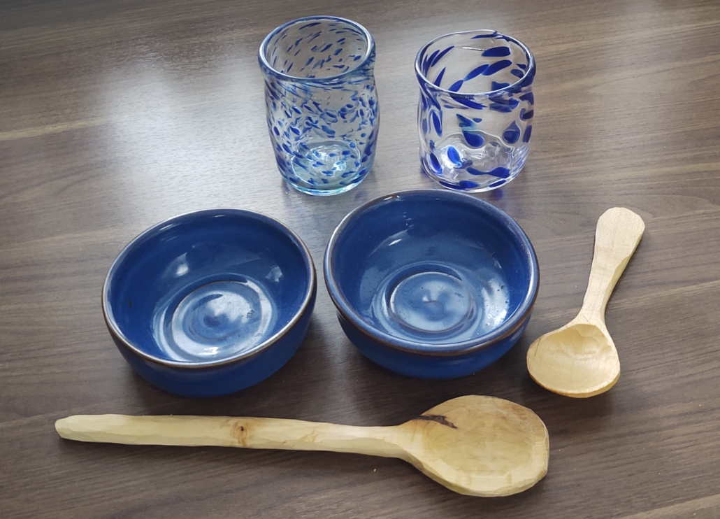 I love your home made crockery – the glasses are lovely!