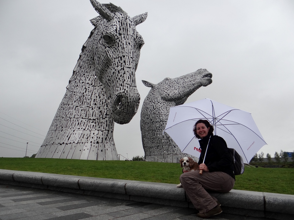 We slept quite well in the Park and Ride, it was peaceful, but I still get edgy when we free camp. We spoke about it this morning, Jay is worried that someone will ask us to move on, I’m worried we’ll be attacked. I’m not fussed about our stuff so much as us. Our things are insured, we’re insured but we aren’t replaceable. Fortunately it rained most of the night, and my rationale believes that baddies don’t go out in the rain. After breakfast we headed off to look at a couple of things on my list of stuff I wanted to see while in Scotland – the Kelpies and the Falkirk Wheel.