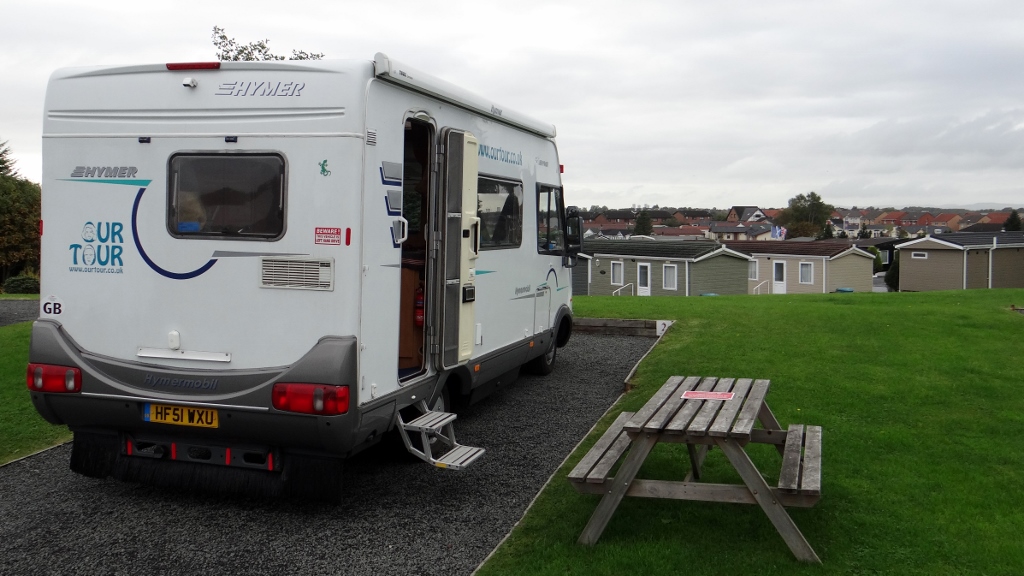 Very happy that I’d crossed two things off my bucket list today, we headed to the campsite which we are now at. The Craigendmuir campsite (now Red Deer Campsite) (N55.88483 W4.14265) is spotlessly clean, and so are we now after hitting the showers. Strangely it’s surrounded by mobile homes for the over 50’s, the advertising promotes releasing the equity in your home by selling it to live the life you have always wanted – I’m not sure this caravan park is the life I’ve always wanted, well not for more than a night or two.