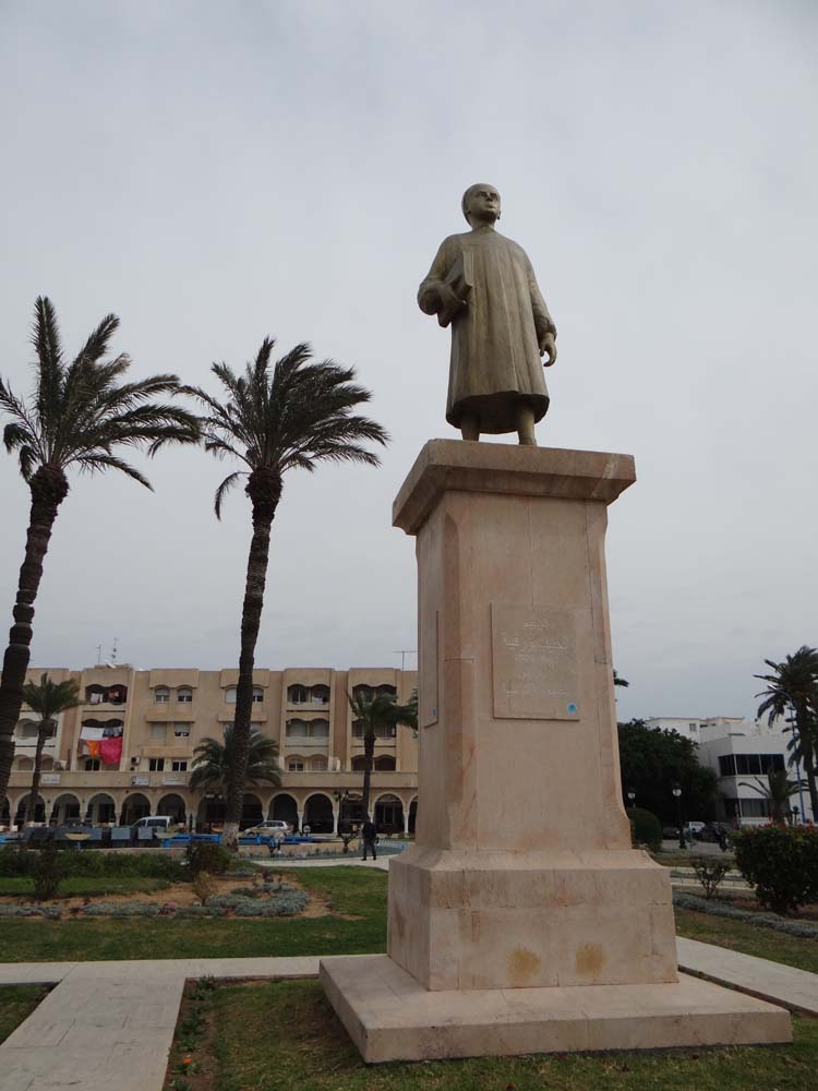 To cheer me up, Ju took me for a wander over to see the tacky-beyond belief golden statue of the schoolboy Bourguiba, celebrating his formative years here before he went on to become a dictator (generally perceived as a benign one, whatever that is), and finally having his school demolished to make way for this daft statue.