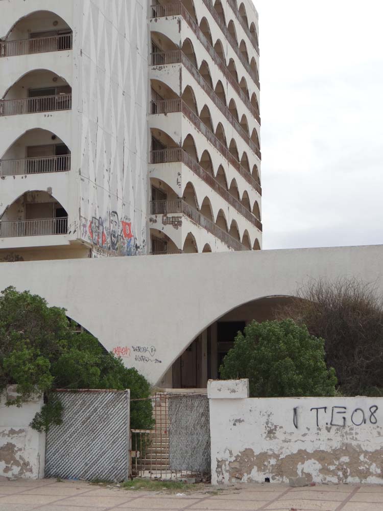 Lunch munched, some work finished off, we walked the beach with Charlie, flinging stuff about to stretch his legs, mainly plastic flip-flops. We imagine it’s a different place here in season, the sunshine giving the place a gleam, polishing off the dullness of it all. The hotels looked shabby or abandoned, the litter and sand blew around, cars beeped creepily at two women walking together ahead of us, Tunisians but dressed as Westerners. We’ve seen a few more English and other European folks wandering about, they seem pretty happy with the place, perhaps it’s a great introduction to North Africa, rather than the ‘in with both feet’ approach we took a few weeks back?
