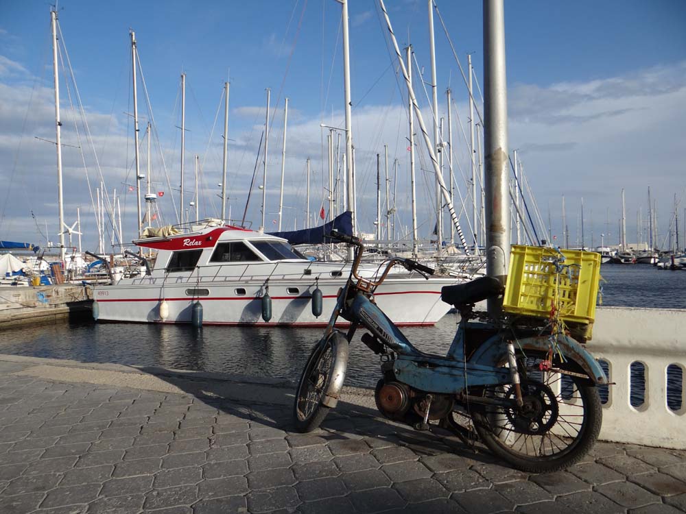Dave the motorhome’s remained firmly planted in position next to maybe £50m worth of luxury yachts, patrolled by guards, in the Port de Plaisance, Monastir (N35.77857, E10.83373). We decided to stay another day, despite what happened last night (see below) as it has to be among the highest security body per buck ratios we’ve ever had, with 3 overnight guards costing us about £2 per night. Also, I woke at about 5am and failed to regain sleep, leaving me in a more-than-usual befuddled state and not fancying tackling the manic driving conditions we’ve found in this busy bit of the country.