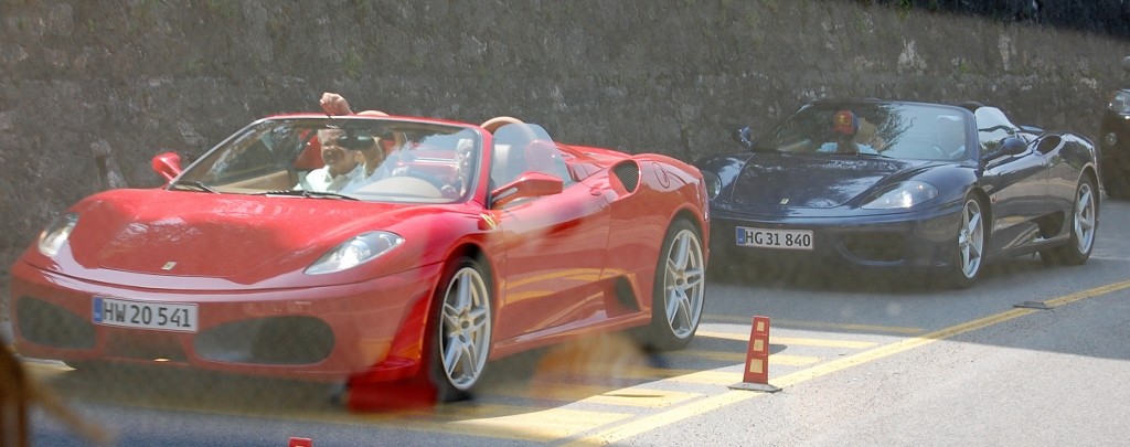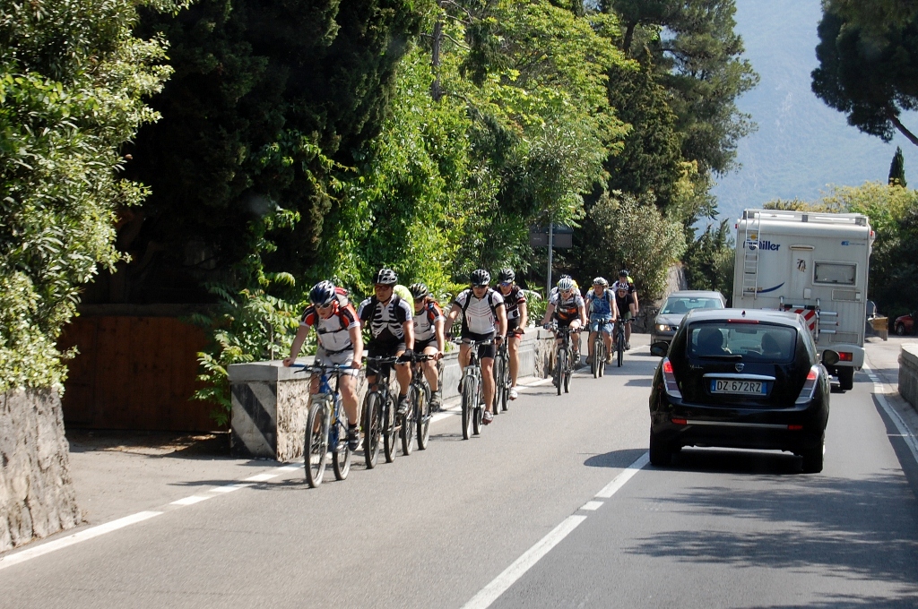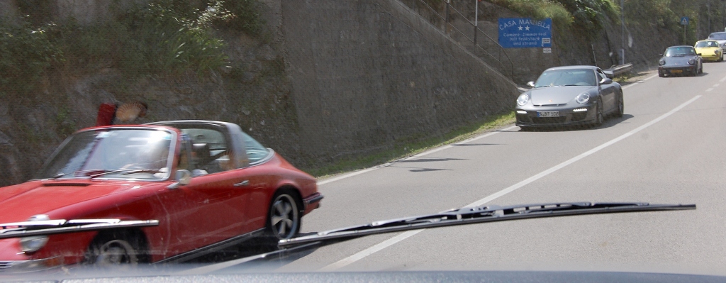 As we left Riva del Garda we could see a traffic jam ahead of us, but this wasn’t just any traffic jam. Porches, Lamborghinis, Ferraris, Mercs, BMWs you name it – all the big boys were out to play today. Most of them were from Germany, so it’s quite clear that at least one European country isn’t suffering economic hardship. The drivers obviously hadn’t counted on the sheer number of Daves on the road though. Behind each motorhome, a tail of luxury cars spread out into the distance.