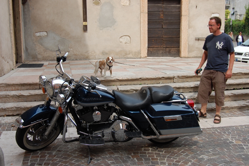 Pulling in at Camping Cisano, I made my way to reception – they take camping cheques :) but not dogs :( – I considered how easy it would be to hide Charlie in the loo, but figured it wouldn’t work so we headed back through Bardolino to a car park where we’d seen a load of campers parked on our way through earlier.