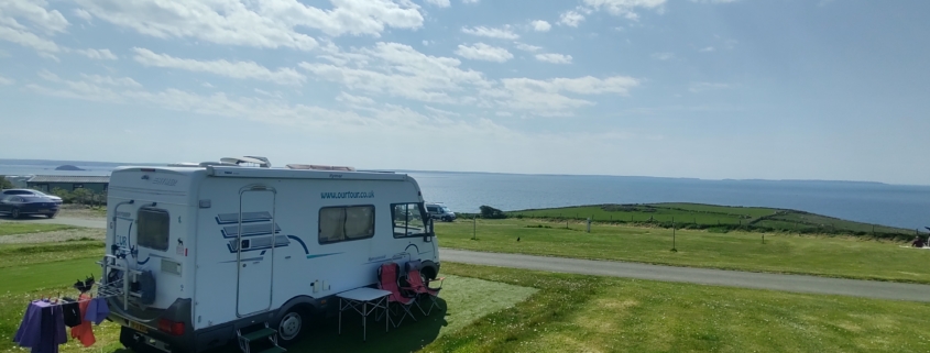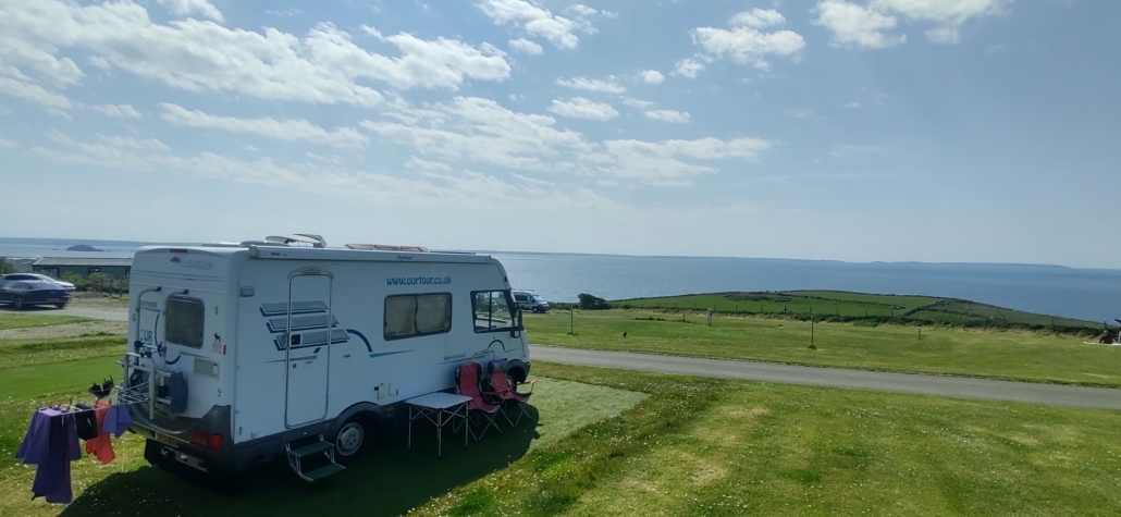 Just arrived at Drefnewydd. They’ve given us a pitch with fantastic sea views, it’s smashing, many thanks for the recommendation.