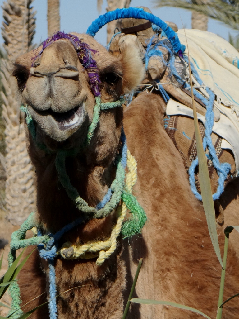 When we did finally surface the sun was heating up Dave’s exterior making him creak and pop, but the electricity was still off. After a breakfast of bean on toast (well toasted baguette, but as close to the British thing as we could get) we went for a walk among the palm trees in the oasis. The sky was blue, the birds were singing and the only thing to break the peace was the braying of donkeys – two of them quite clearly having a very loud chat across a considerable distance.
