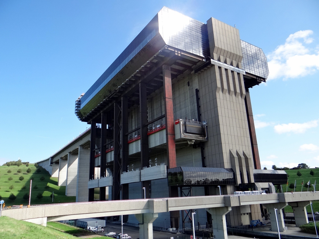 We spent ages looking for somewhere to head for. We’d been contacted by a couple from Brussels who are planning their own adventure and wanted to hook up for a coffee, but going through our database and books only proved to us that some capital cities just aren’t geared up for motorhomes. We’ll just have to hope we bump into them on the road. We went for one of the few options in the vague direction we were heading – Bouffioulx just south east of Charleroi. As we drove along the motorway Jay spotted a sign for a boat lift, having read that the biggest one in the world (said in Jeremy Clarkson Top Gear voice) was in the area, we felt we had to pop by.