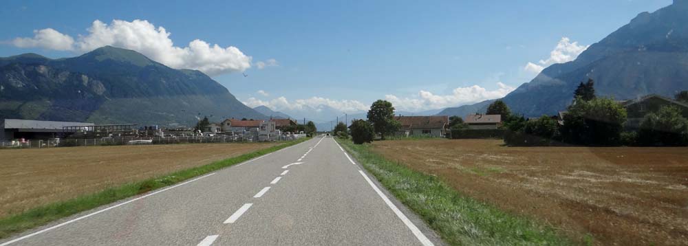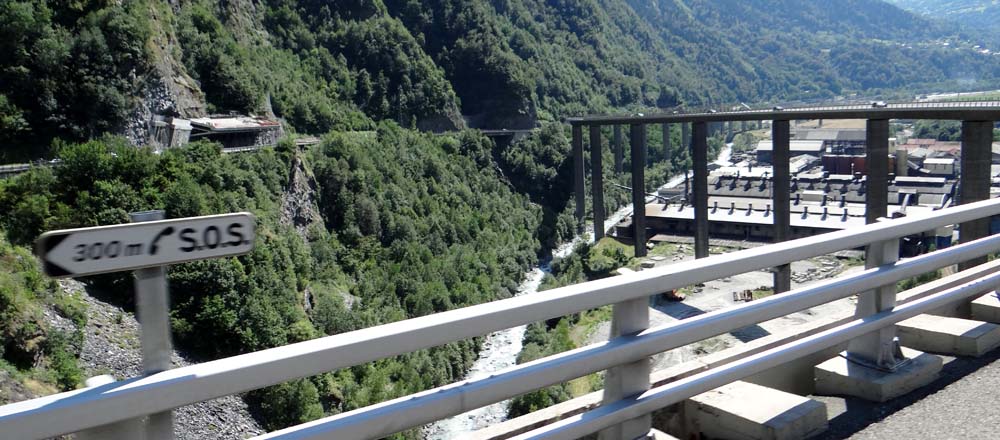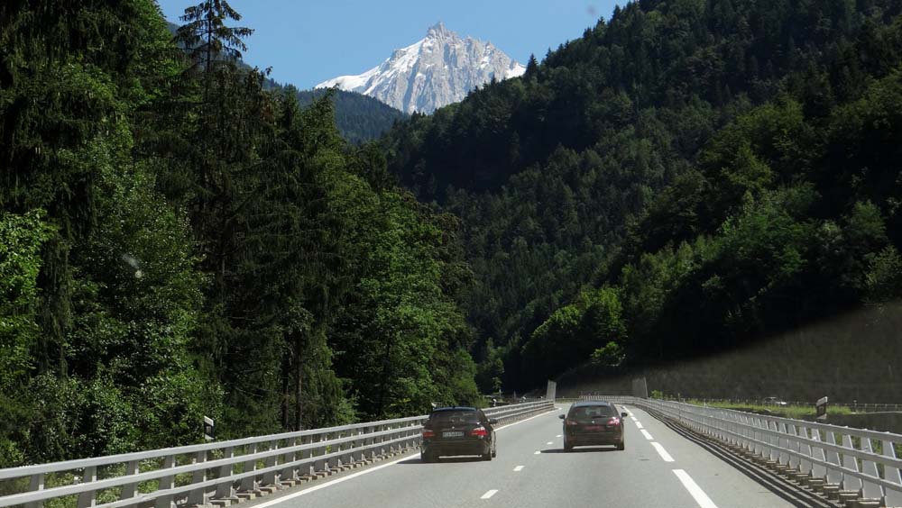 The road to Chamonix has us on the left on raised road, those going the other way cling to the hillside.
