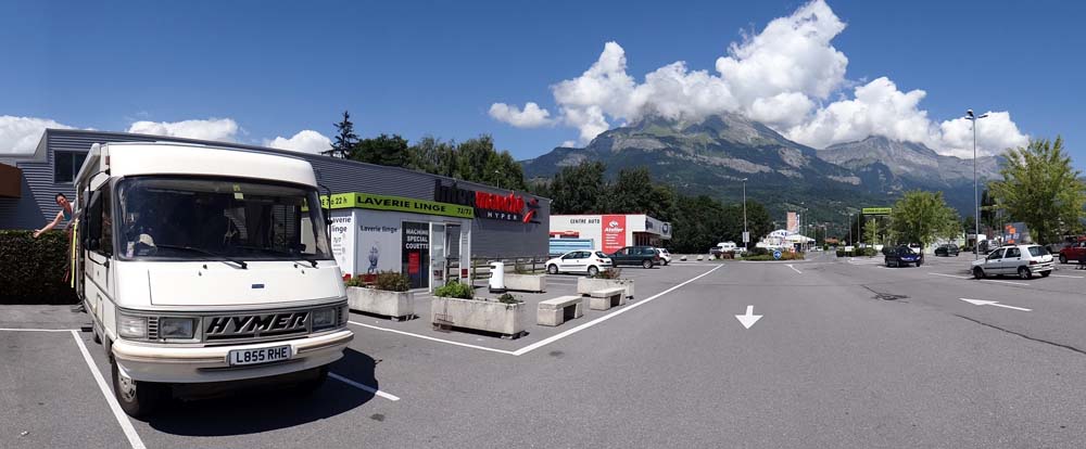 Dave the motorhome can’t believe his luck! He’s parked up on the drive of a great couple in the middle of the French resort of Chamonix and is hooked up to their electricity!