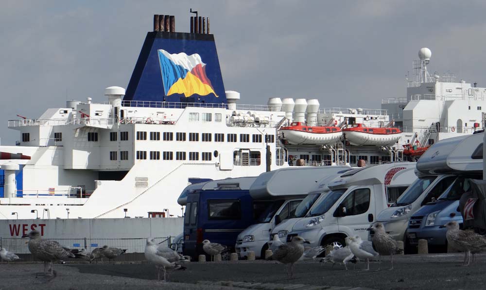 This is it folks! Dave the motorhome is sitting under thundery skies in the aire which looks out at the port of Calais (N50.96644 E1.84418). Across the grey water we can make out the white cliffs of Dover in the distance, shining out from under dark, stormy skies. Huge ferries come and go just a hundred or so feet from us making Dave feel very small, and perhaps a little bit insignificant, after all tomorrow he’ll no longer be on an adventure around Europe.