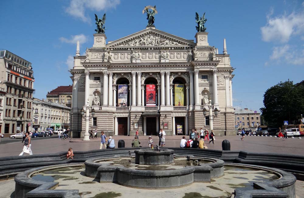 With no idea as to where it would take us, it just said city centre on the front, we waited until everyone else got off, then looked around us to see where we were. We’d been dropped up just behind the Solomiya Krushelnytska National Opera and Ballet Theatre which was built on top of the Poltva River, but more importantly it is at the top end of Freedom Avenue (Svobody) and our walking tour started from half way down the same road. So off we went.