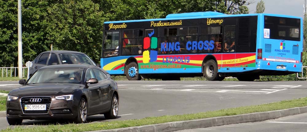 Lviv’ed out, we headed for where the bus had dropped us off, frantically photographing anything and everything in Cyrillic as tomorrow it will all be gone. The buses run every ten minutes or so, and when one turned up we jumped on. The driver nodded an OK to Charlie and checked our destination by saying ‘King’ and making an X-Factor style X across his chest with his arms. I nodded so he started to pull off, with Jay still outside the door holding Charlie’s lead. Jay leapt on board as we drove around the corner and stopped again at the actual stop – maybe the last one was dropping off only? We handed over our 2 Hr each and settled in as it once again filled up to beyond UK Health and Safety levels.