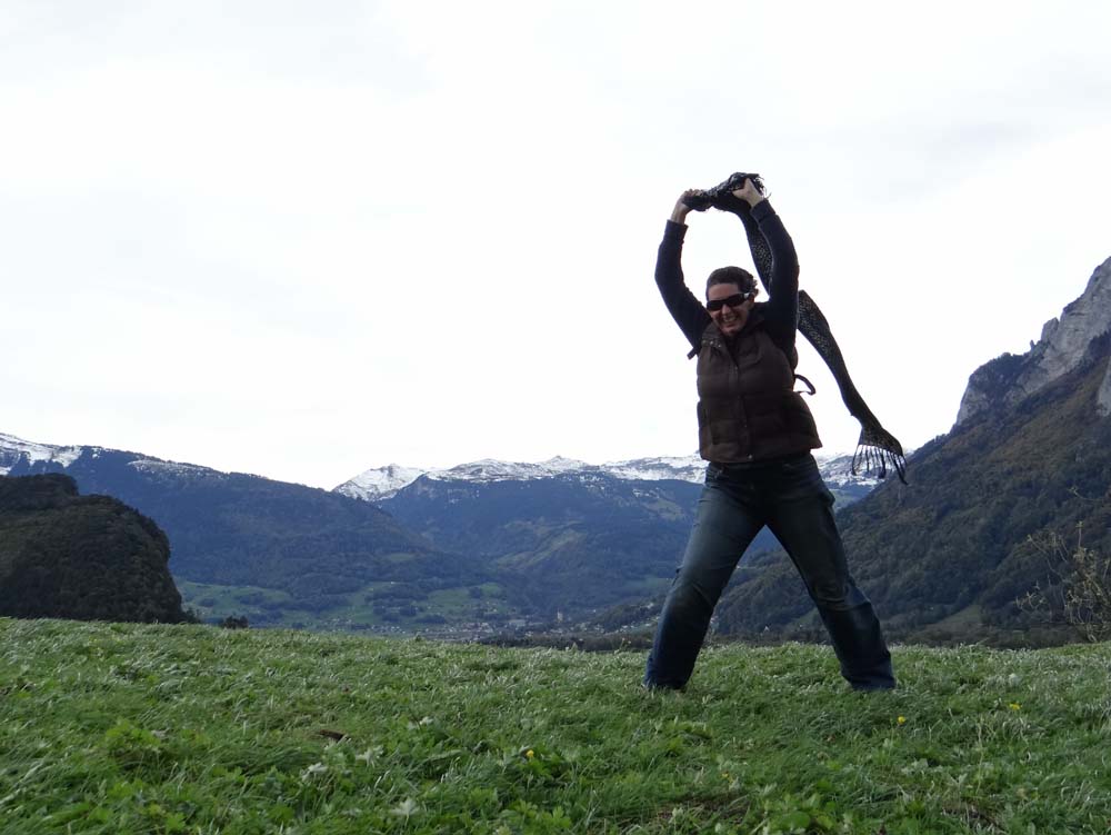 What next? A Liechtenstein tour of course. About 20 minutes later we’re half way across the country in the collection of houses known as Balzers. After poking our heads into the church, and listening the organ bloke loudly tuning his instrument for a few seconds, we headed up the hill to our second castle of the day. The place was closed, so we fooled about a bit in the wind. Charlie was not amused, jowl-flapping seriously upsets him.