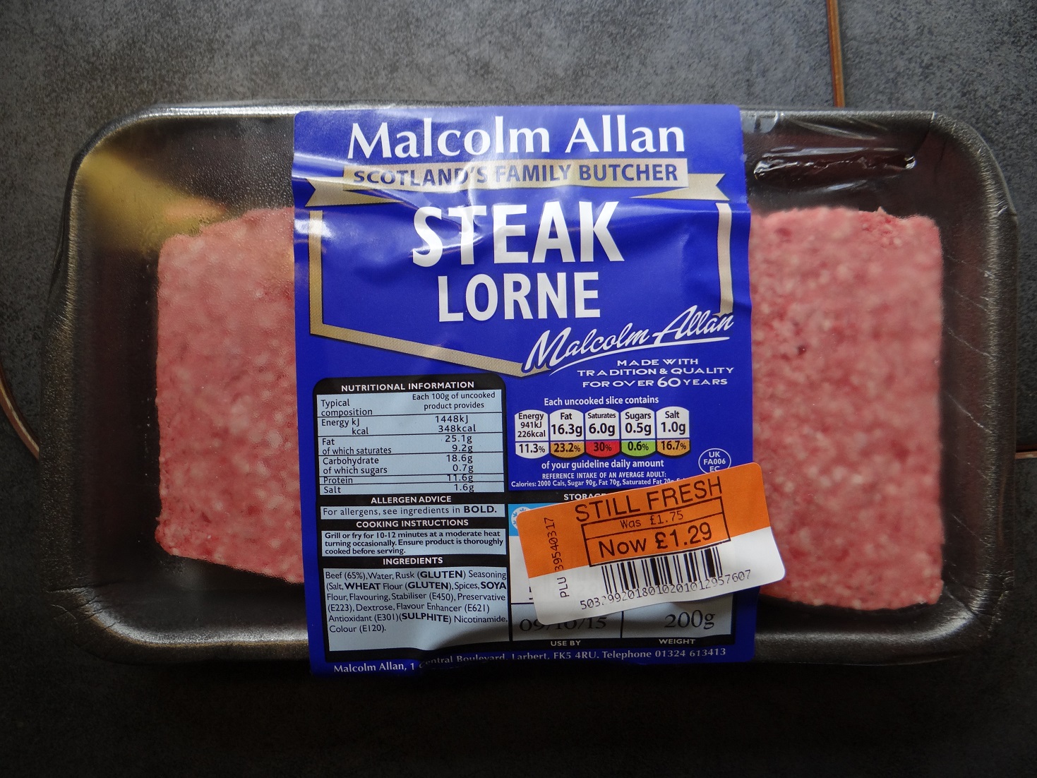 Where next? The map came out. We’re meeting Chris and Tina tomorrow Birmingham-way. Between Langholm and there: a whole shed load of M6. Ju pulled out our Britstops book and found this place, so here we came. Via some M6 motorway services that is, where I took great delight in using the 2 hours free parking to cook up this stuff (see below) procured from the Co-Op, along with baked beans and some tattie cakes. The battered haggis was tempting, but not reduced so was passed over.