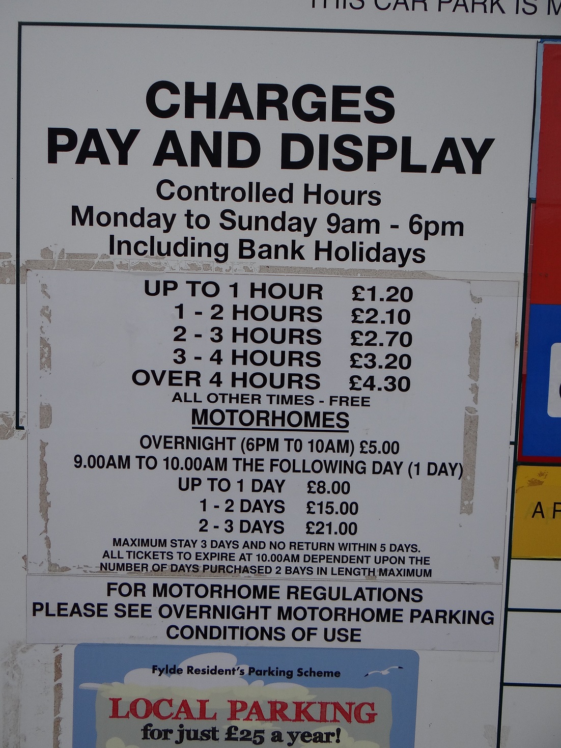 The charges for this location will be lower than the current facilities at St Annes Swimming Pool Car Park. £4 overnight (6pm to 10am), £7 for 1 day (9am to 10am the following day), £14 for 2 days and £20 for 3 days.