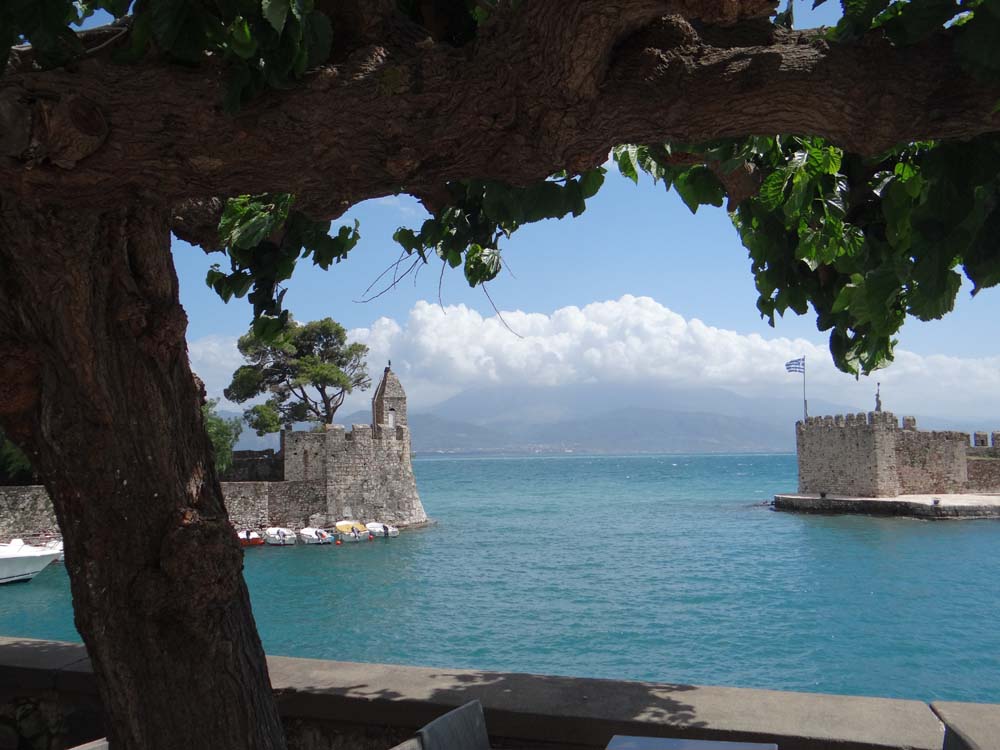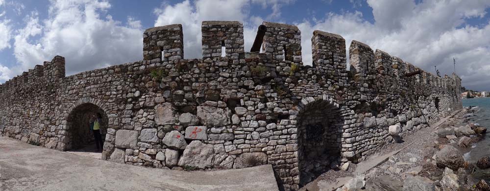 Nafpaktos castle on a sunny day in May. Even Byron might have struggled to get his leg over these, ahem.