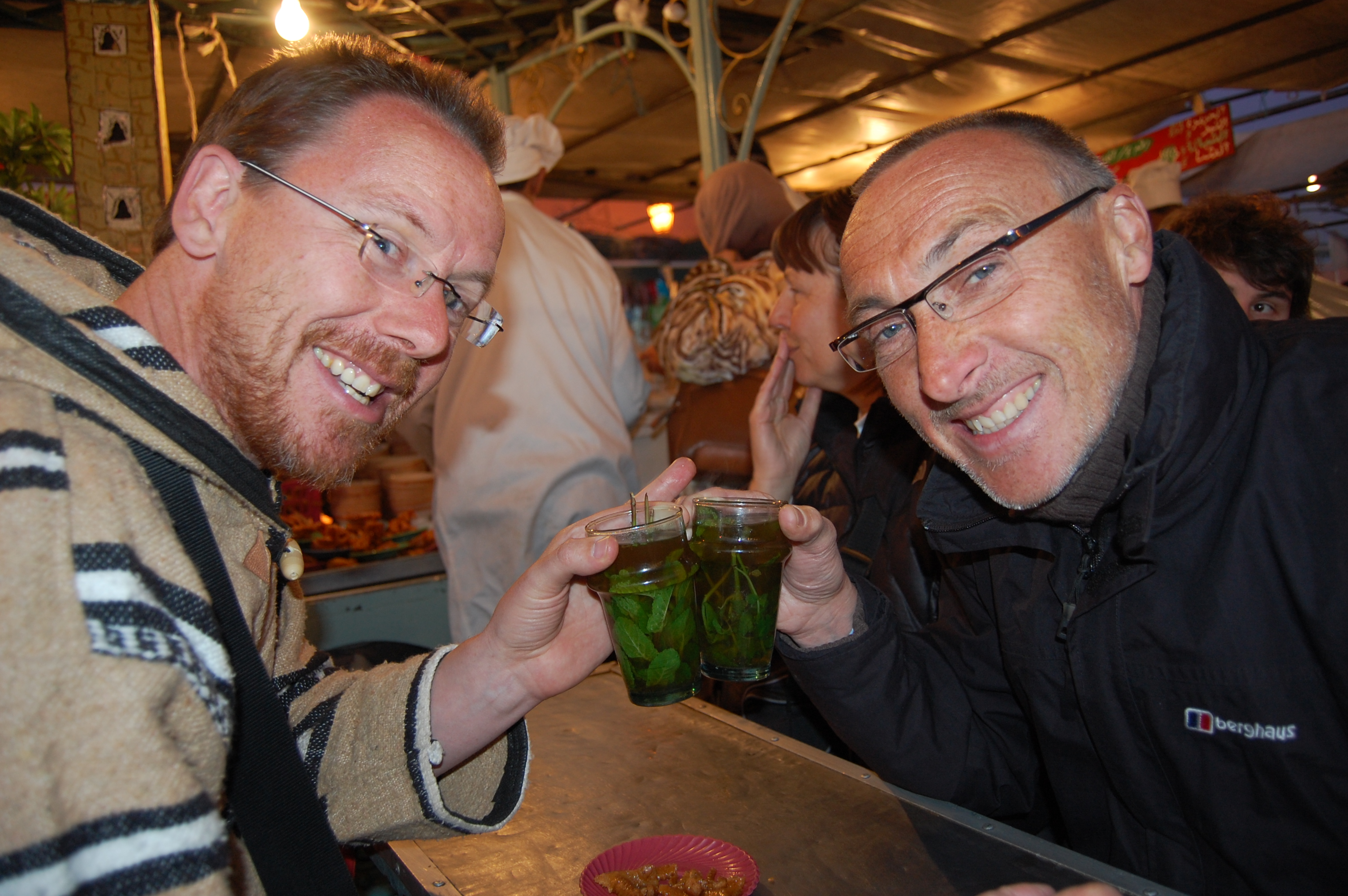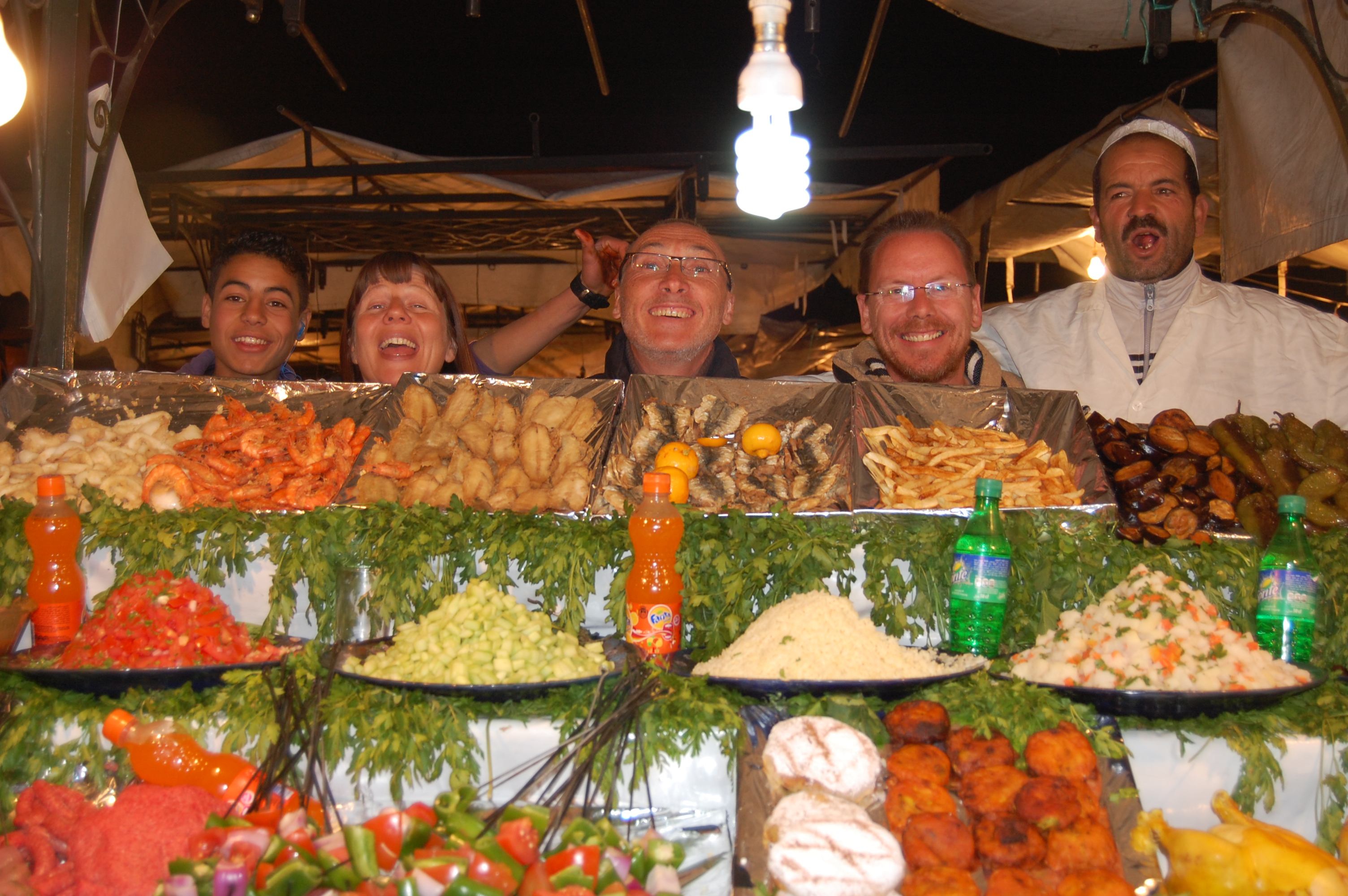 Once night falls, the square is said to explode into life. It did, to be fair. With plenty more people begging/harassing you. I took a photo of a performer who immediately ran out of the circle and demanded money from me. Fair enough – I handed over 1.5Dh – about 12p – enough for a dodgy photo I thought (see below). He demanded more, I walked off, fed up. We then got a pretty much constant stream of touts dragging you into their food stalls – mostly good natured and some quite funny to be fair (lots of references to being Jamie Oliver, ‘luverly jubberly’, ‘107 takes you to heaven’ – the stalls were numbered). Once we’d sat down at a table, every minute a new beggar turns up while you’re eating. Some with children, some with whole families. Easy enough to ignore, but not exactly relaxing or fun.